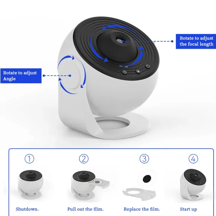 Featuring a 360° rotating design, this projector casts a stunning display of stars, planets, and a vibrant starry sky across your walls and ceiling. Perfect for kids’ bedrooms, romantic evenings, Valentine's Day surprises, weddings, or special celebrations, this projector creates a dreamy and calming ambiance. Compact and easy to use, it serves as both a night light and a decorative element. Bring the magic of the cosmos to your space and let the celestial charm captivate everyone.